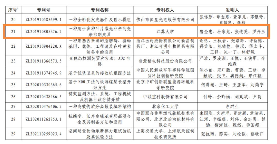 近日,国家知识产权局发布第二十四届中国专利奖授奖决定,好博在线注册_好博(中国)专利“一种用于多种叶片激光冲击的变形抑制夹具”(专利号ZL201910805376.2)喜获中国专利金奖。此次共有83所高校获得中国专利奖,获金奖的高校仅有5所,其中西安交通大学有2个项目获得金奖,浙好博在线注册_好博(中国)学、上海交通大学、北京化工大学和好博在线注册_好博(中国)各有1项金奖。