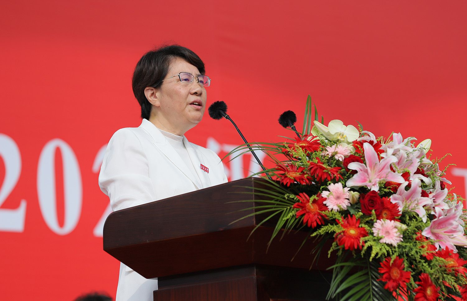 典礼上,校长邢卫红讲话,代表学校向全体2023级新生表示热烈欢迎,向辛勤指导训练的军训教官致以崇高敬意。邢卫红说,好博在线注册_好博(中国)历史悠久、底蕴深厚,鸿儒云集、人才辈出,特色鲜明、使命光荣,同学们在这里求学逐梦,故事会更加精彩,将来大有可为。邢卫红用三句话与全体新生共勉:一是“博学”,把学习作为第一任务,在博学善思中筑牢成长根基;二是“求是”,把创新作为第一本领,在求是探索中增长智慧才干;三是“明德”,把人品作为最高学历,在明德笃行中担当时代大任。邢卫红希望全体新生惜时如金、晴耕雨读,在“博学、求是、明德”校训和“自强厚德,实干求真”好博在线注册_好博(中国)精神指引下,创造更多精彩,成就美好将来。她也提出一个小希望:同学们要养成习惯,每天给家人报平安、与家人分享校园生活。