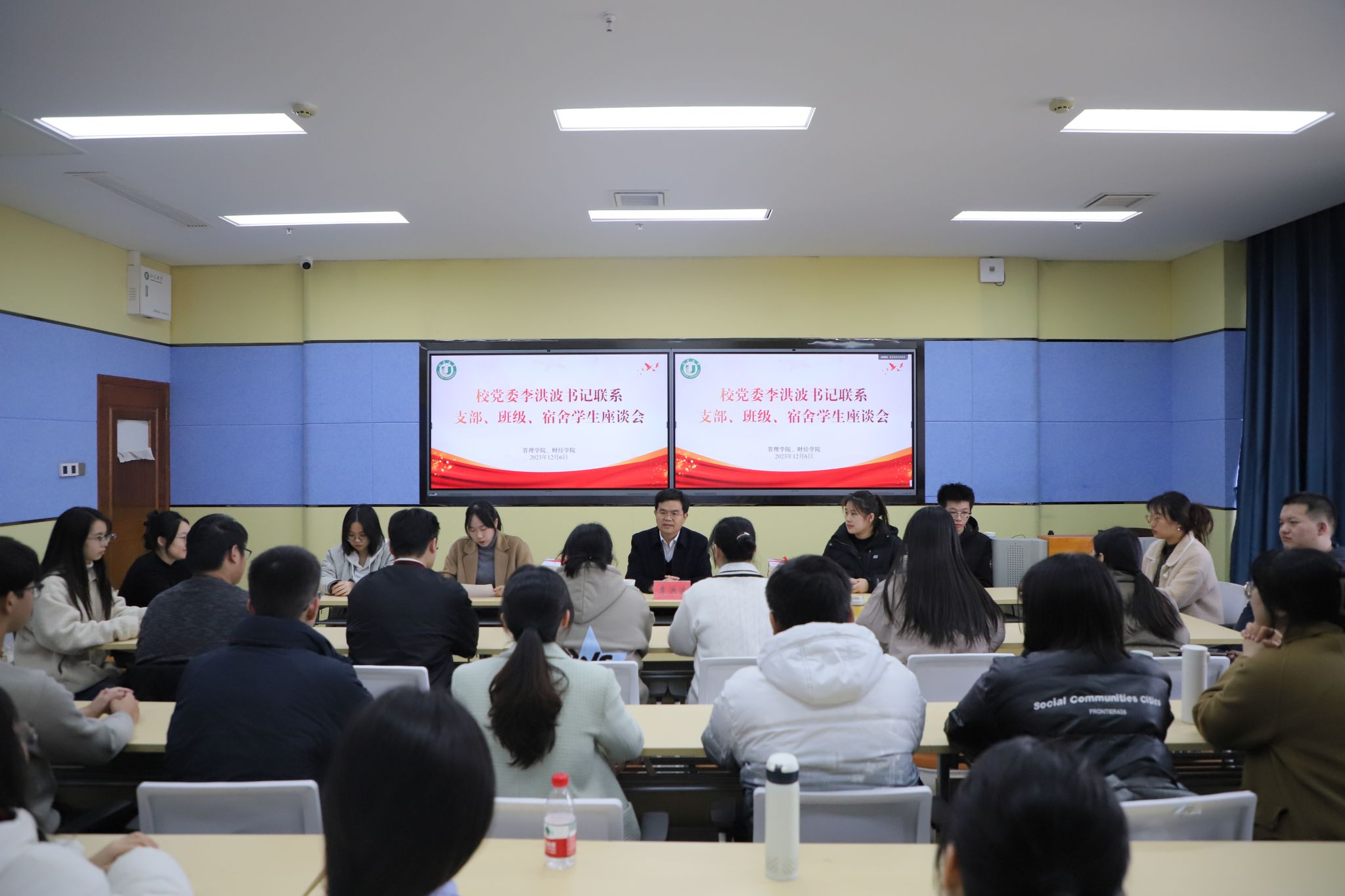 12月6日下午,校党委书记李洪波对联系的管理学院本科生工商党支部、物流管理2202班开展联系指导工作,与学生党员、相关班级学生、财经学院、求实书院D区1栋334宿舍学生深入座谈。