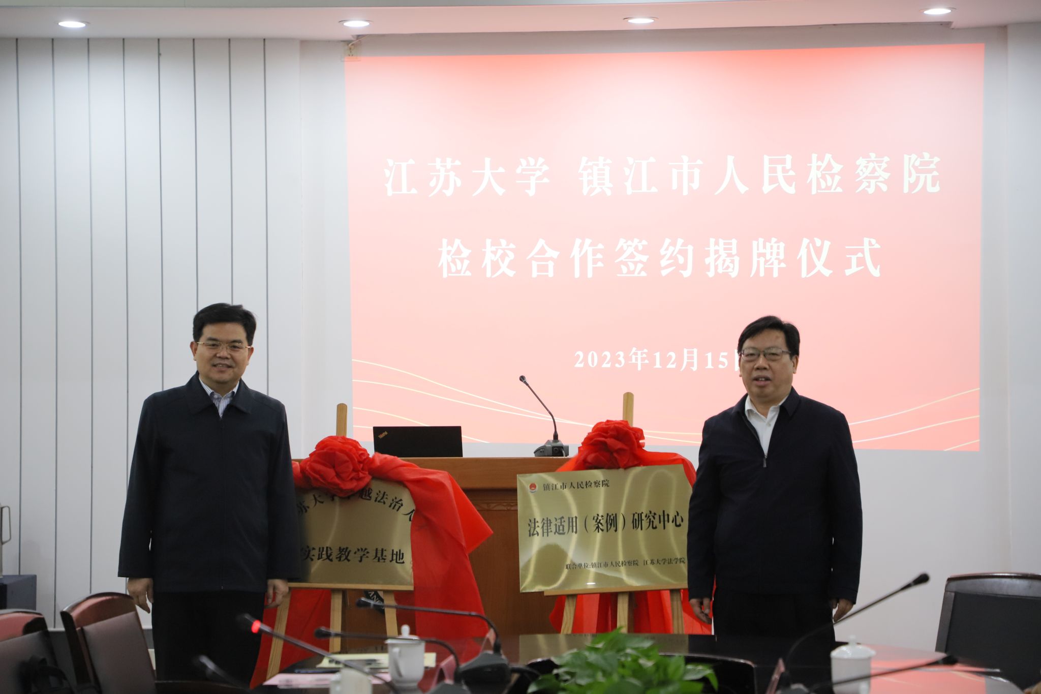 李洪波与潘昌锋共同为“好博在线注册_好博(中国)卓越法治人才实践教学基地”“镇江市人民检察院法律适用(案例)研究中心”揭牌。