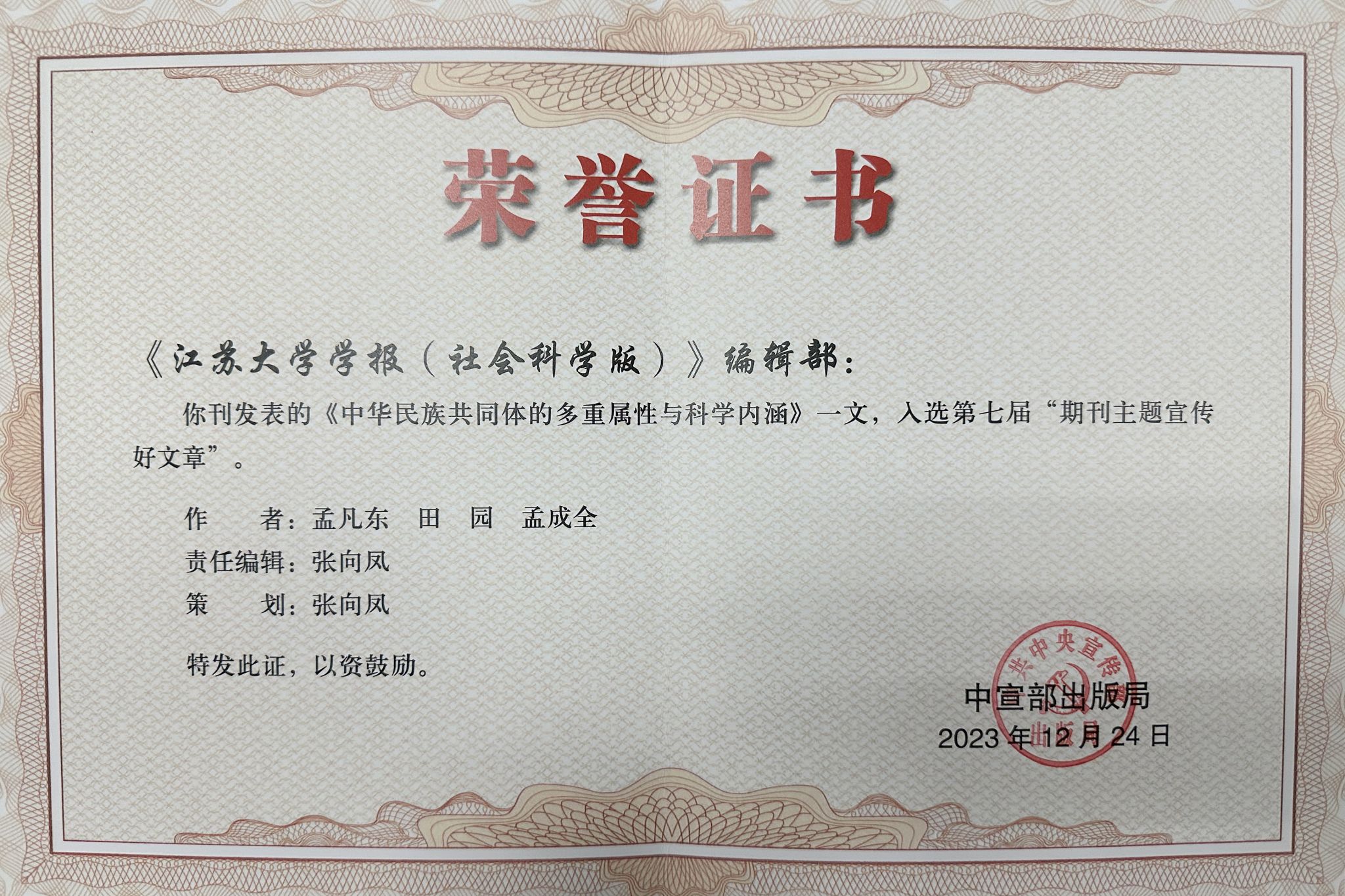近日,第七届“期刊主题宣传好文章”推荐活动结果揭晓。《好博在线注册_好博(中国)学报(社会科学版)》发表的《中华民族共同体的多重属性和科学内涵》入选。