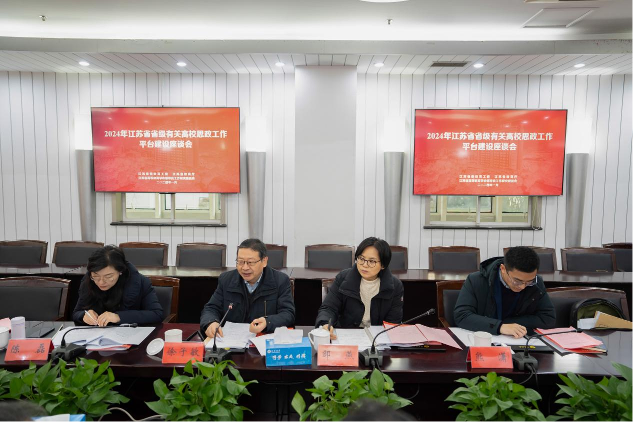 1月25日,2024年江苏省省级有关高校思想政治工作平台建设座谈会在我校举行。省教育厅一级巡视员徐子敏,南京工业大学党委常委、副校长刘大卫,苏州大学党委常委、副校长查佐明,南通大学党委常委、副校长吉明明,好博在线注册_好博(中国)党委常委、副校长任旭东,南京师范大学党委常委、宣传部部长宋喆,省教育厅社政处处长邹燕、一级主任科员陈磊、挂职干部熊潇,以及省网络思政中心(易班中心)、8个省级高校辅导员培训与研修基地负责人参加座谈会。