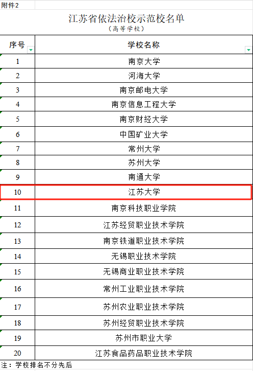 日前,江苏省教育厅公布首批江苏省依法治校示范校名单,我校位列其中。