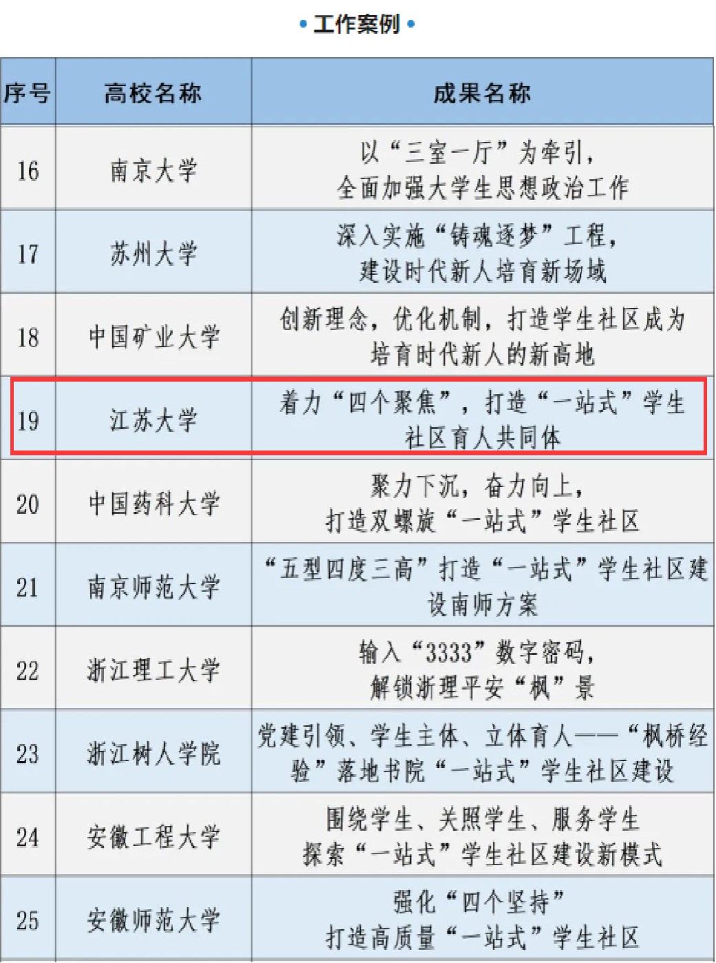 近日,教育部思政司公布了2023年全国高校“一站式”学生社区风采展示活动优秀成果评选结果,我校推荐的4项成果全部入选,是全国所有版块皆有成果入选的6所高校之一。