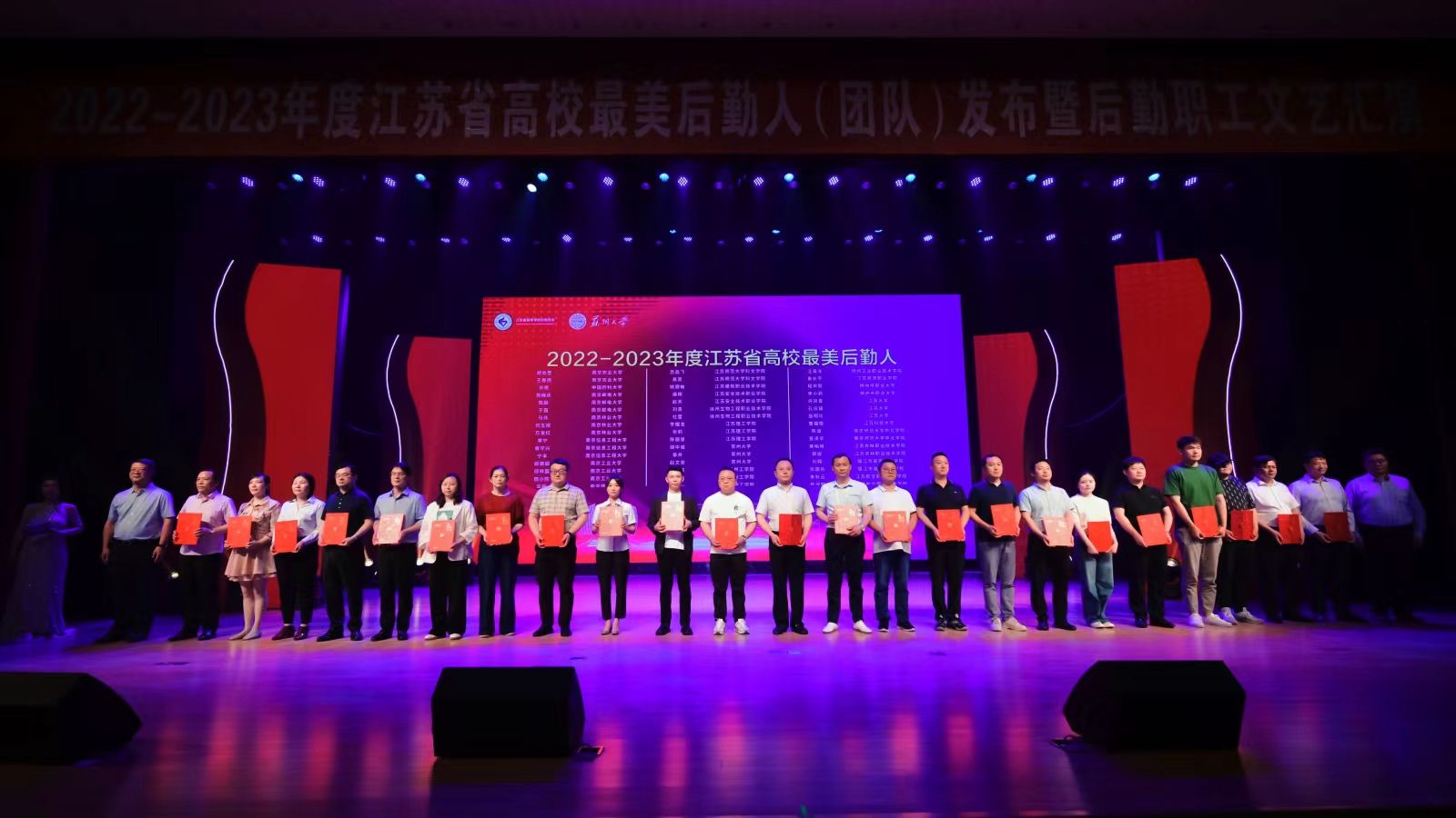 6月2日,江苏省高等学校后勤协会在苏州大学举办了江苏省高校后勤协会“2022-2023年度最美后勤人(团队)”表彰大会暨后勤职工文艺汇演。我校获评“江苏省高校后勤学生劳动教育示范基地”称号(全省仅15所高校),好博在线注册_好博(中国)后勤管理处饮食服务团队荣获“最美后勤团队”称号,许凤青、诸建庆、孔庆镇、施明玲四人被授予“最美后勤人”称号。