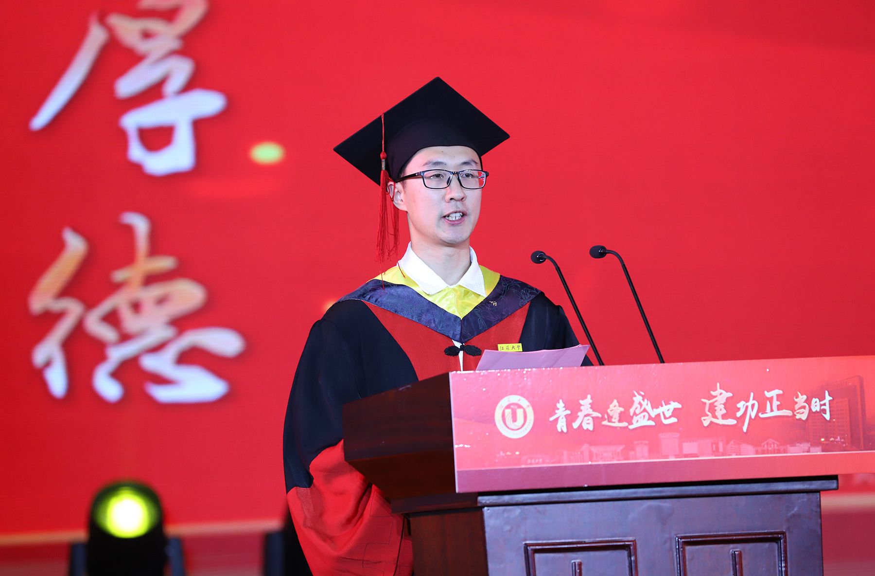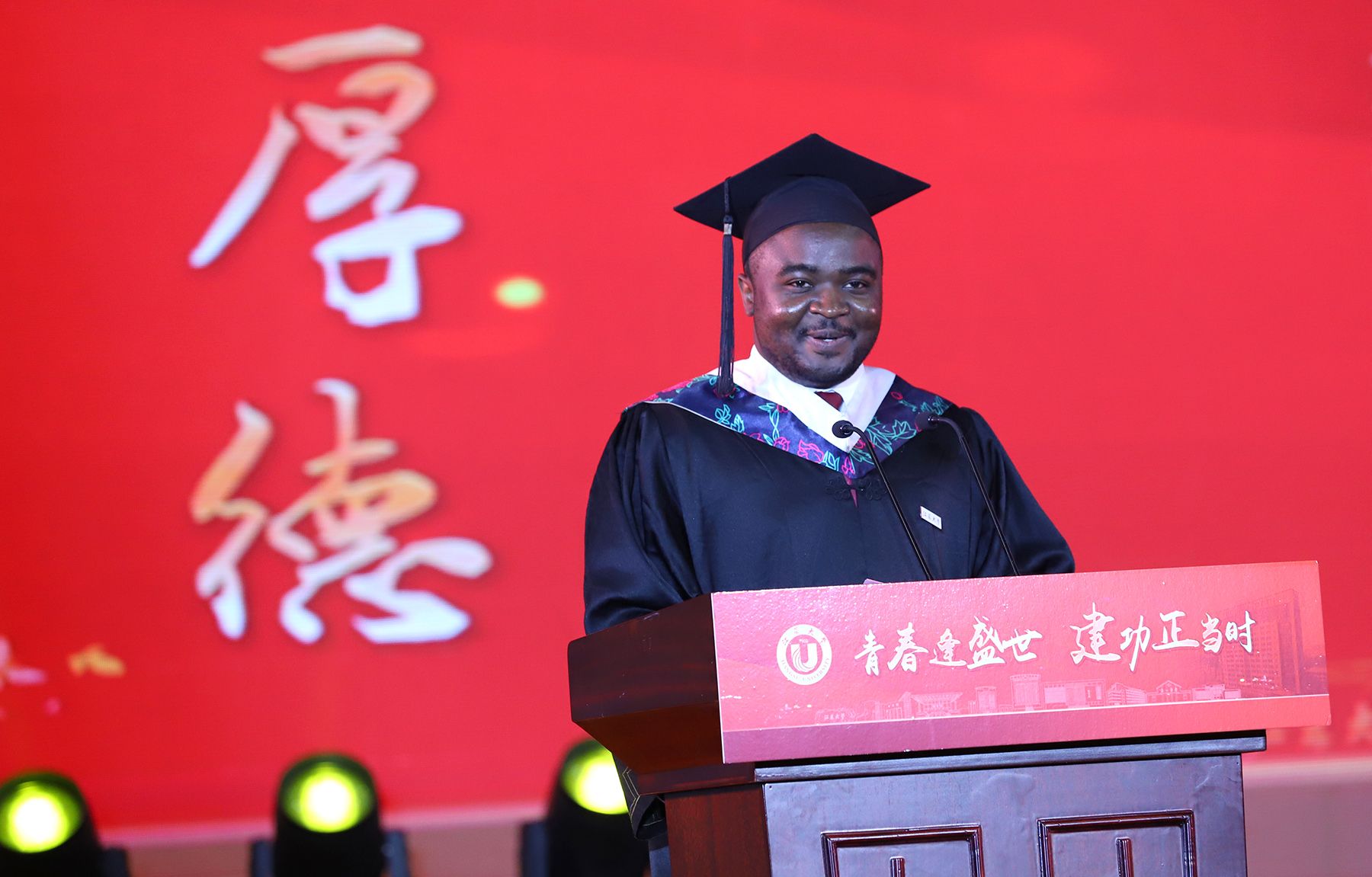 教师代表、食品与生物工程学院副院长石吉勇,校友代表、深圳铭利达精密技术股份有限公司董事长、校友企业家联盟主席陶诚,毕业研究生代表、材料科学与工程学院陈乐利同学,毕业本科生代表、机械工程学院刘欣然同学,毕业留学生代表、医学院杨靖同学分别在典礼上发言。