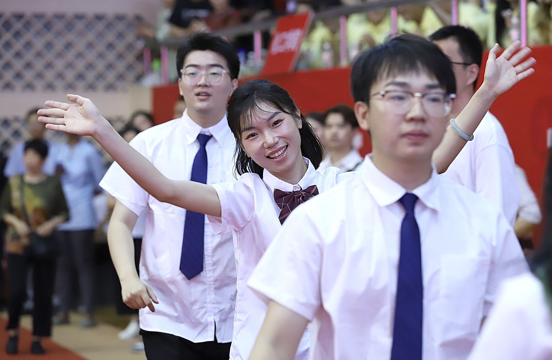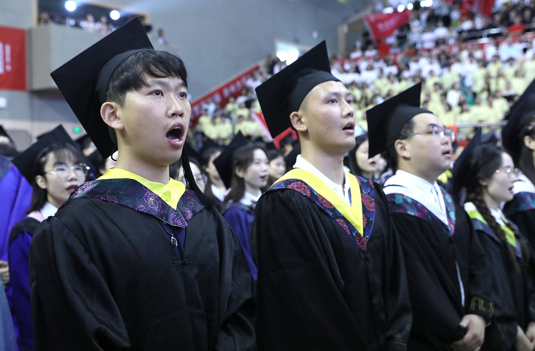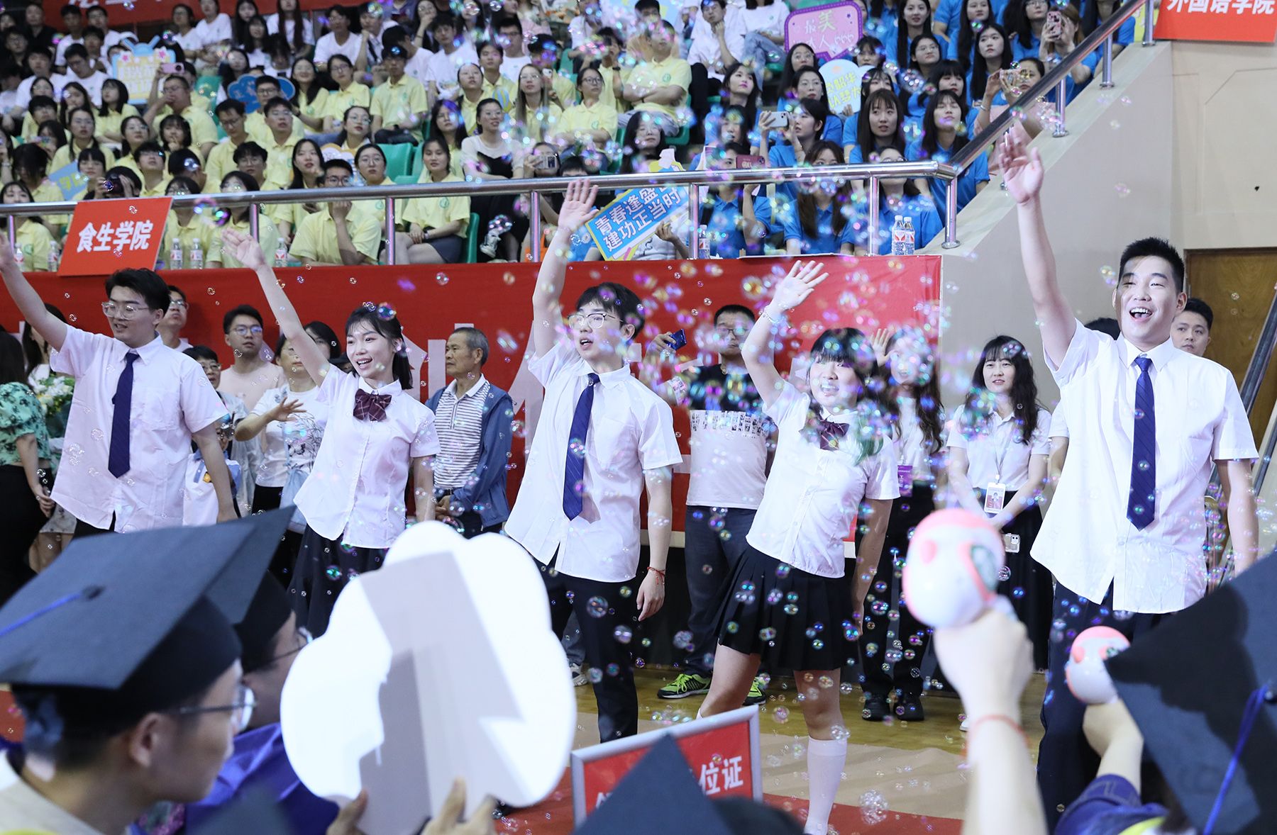 典礼前,毕业生代表还演唱了《雪龙吟》《小美满》《离别开出花》等暖场歌曲串烧。