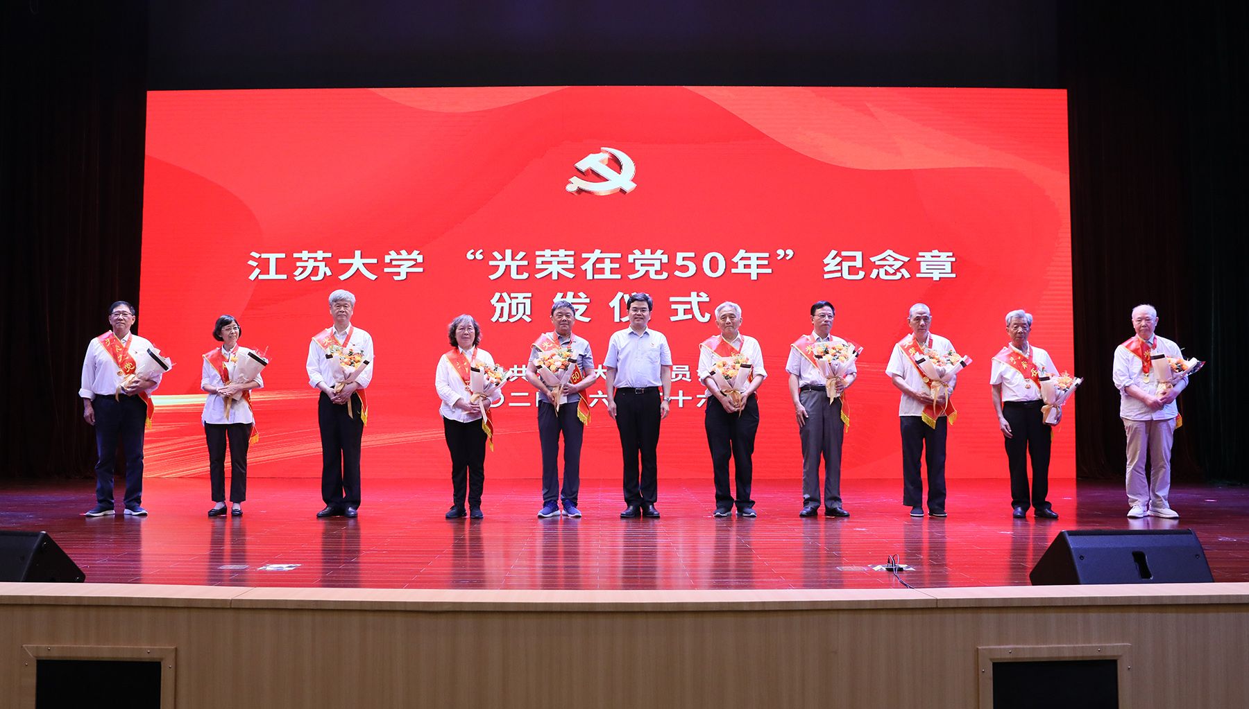 “光荣在党50年”党员代表,管理学院党委、财经学院党委、附属医院党委、机关党委教职工党员代表,新党员代表等400余人参加活动。(党委组织部)