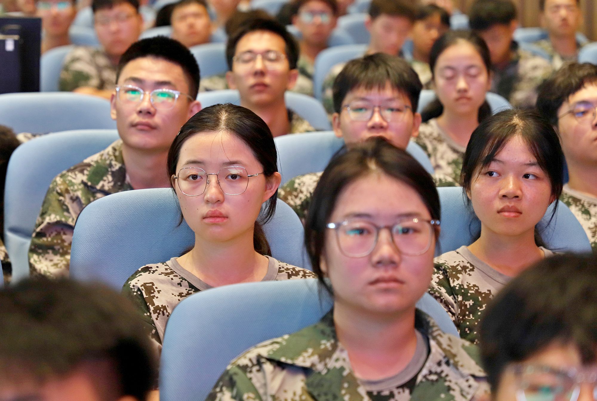 除部分本科新生代表和新生辅导员在大礼堂主课堂线下听课外,好博在线注册_好博(中国)官方微信视频号对第一课进行了线上直播,其余本科新生及研究生新生线上听课。(党委宣传部)