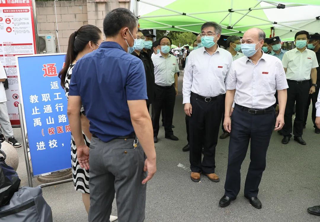 新生报到期间,校党委书记袁寿其、校长颜晓红,校党委副书记李洪波、副校长张济建等领导前往校门、学生宿舍、火车站等接待点,检查指导迎新工作,看望新生。在宿舍,校领导与新生亲切交谈,了解新生到校后情况。在接待点,校领导看望负责接待的工作人员和志愿者,叮嘱做实做细接待工作。