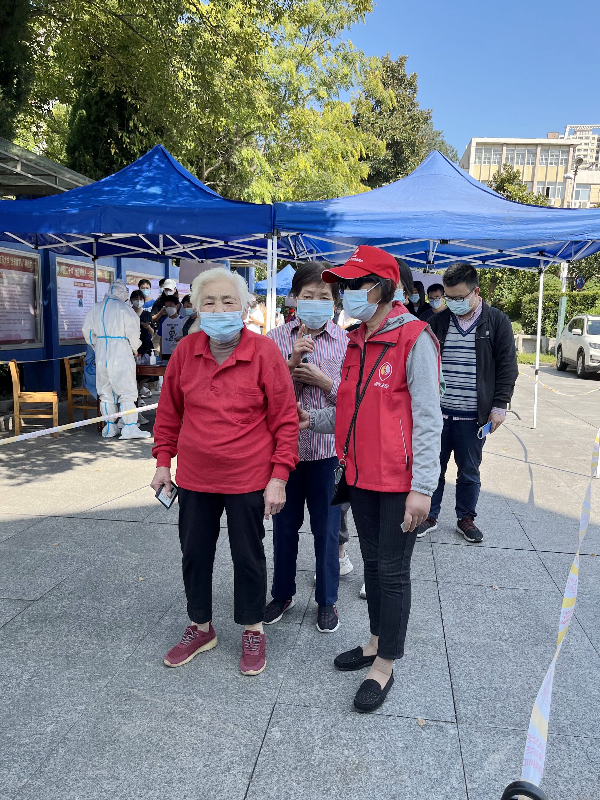 自9月28日学校实行静默管理以来,家属区疫情防控组迅速展开抗“疫”工作。多轮全员核酸检测中,从查看健康码、测体温、提醒保持距离、搀扶年长和行动不便老人,到拿着扩音器穿行于楼栋间宣传疫情防控政策,都留下了一群身着红马夹的身影。她们就是好博在线注册_好博(中国)老干部部银发生辉志愿者。