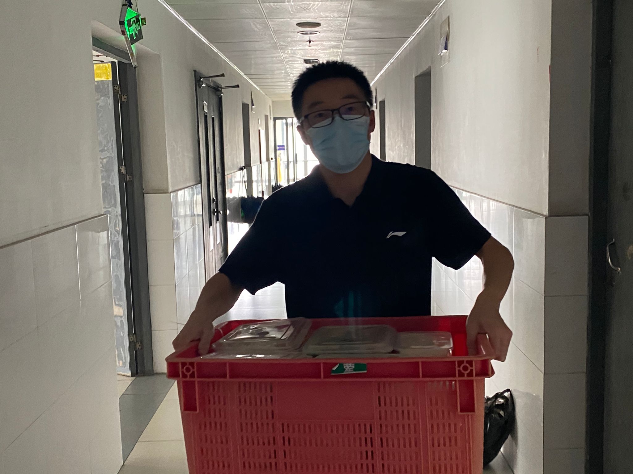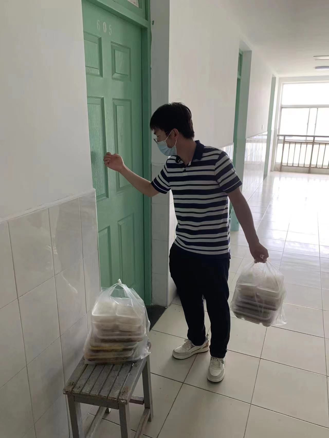 两位新教师王红伟、刘洋报名志愿者,9月28日晚进校,与小组成员黄志伟一起,驻校参加核酸检测信息录入、送餐等工作,学院办公室、会议室成了他们的临时住所。