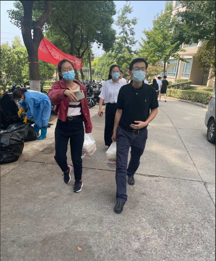 疫情就是命令,防控就是责任。党员抗疫突击队认真举行一场场疫情防控会议,认真领会,积极部署。每一次送餐,志愿者们都按时按点,热情服务,耐心解释;每一次数据登记,大家都勤勤恳恳,任劳任怨,细心引导。老师们坚持早起先送餐,再参加核酸检测信息录入工作,忙碌了一个上午后,下午继续完成科研任务。