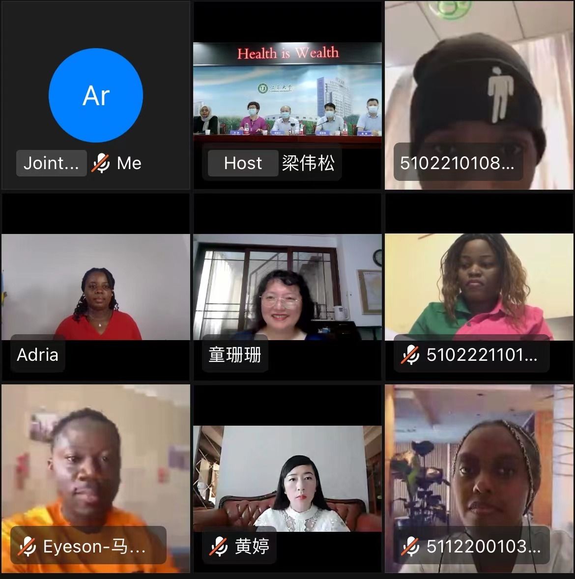 活动连线正在医院接受治疗的津巴布韦患病留学生克莱顿。该生今年5月下旬突发重病,生命垂危进入ICU治疗,医疗保险无法负担全部治疗费用。校领导、海外学院师生、国际处和药学院教师及江苏康尚生物医疗科技有限公司总裁、镇江市红十字会等共同捐款近9万元,抢救该生脱离病危状态,目前病情稳定、恢复情况良好。