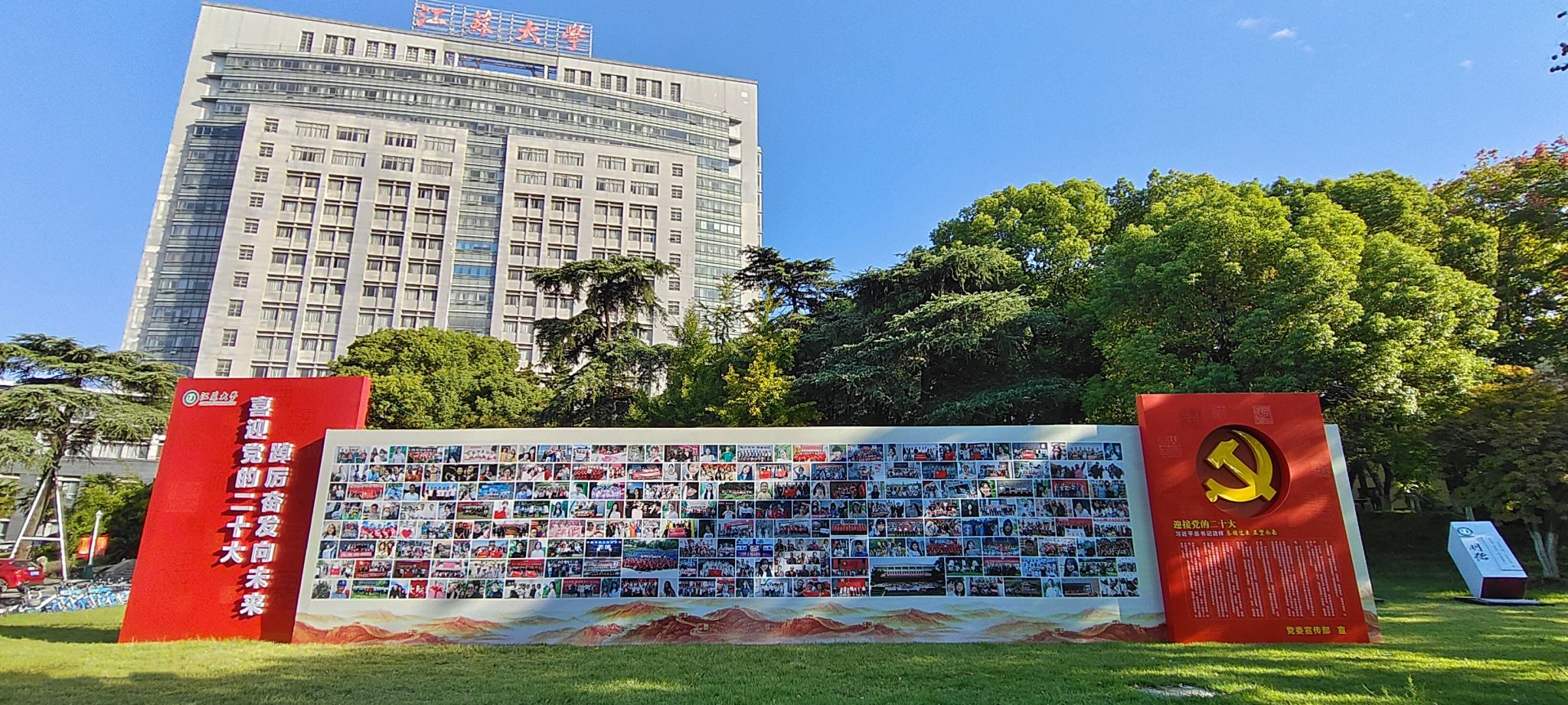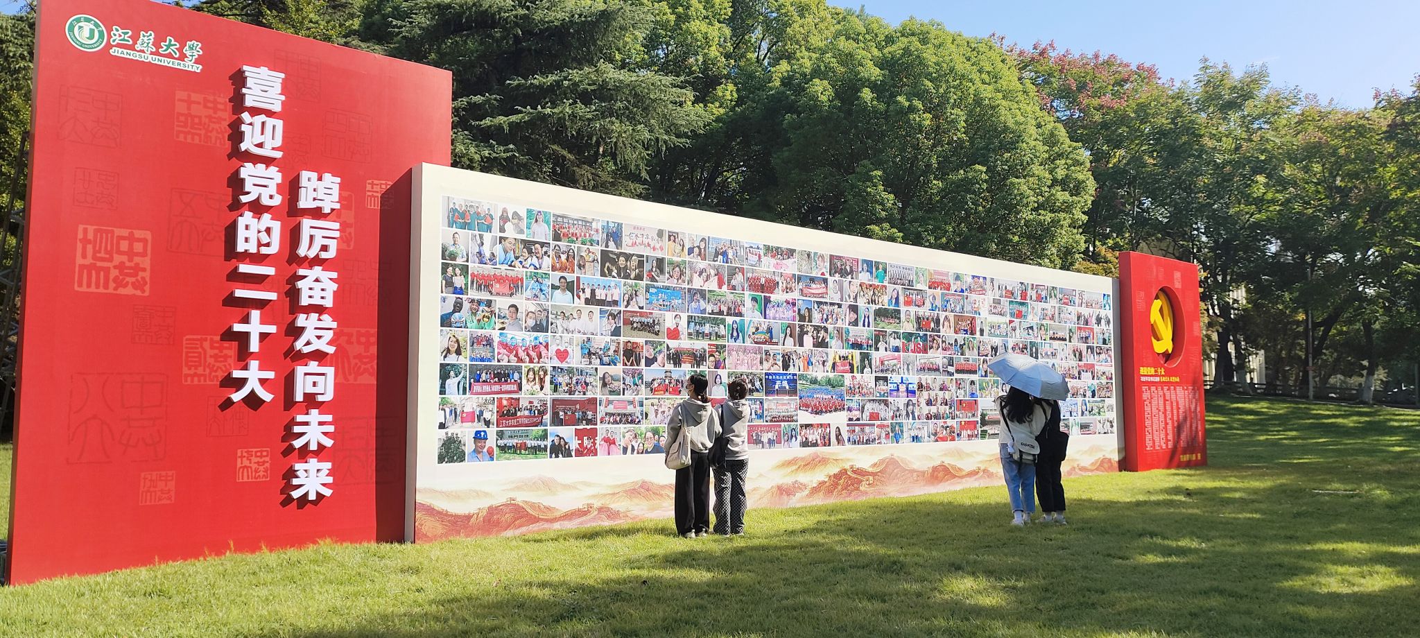 10月7日,学校“迎接党的二十大 好博在线注册_好博(中国)幸福风采墙”在五棵松草坪布设完成,师生员工及校友用幸福的微笑喜迎党的二十大胜利召开。