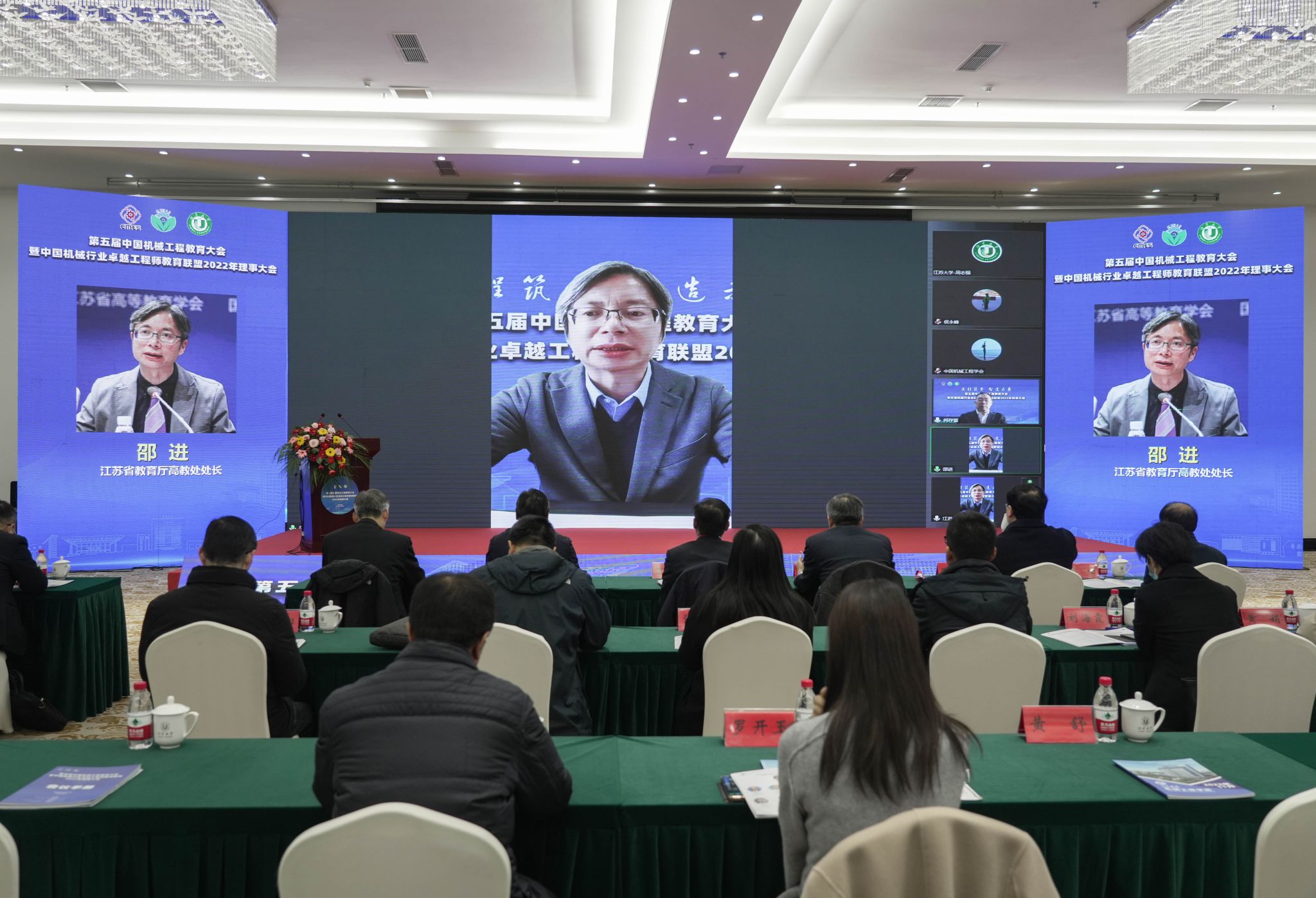中国机械工程学会驻会副理事长陆大明,大连理工大学常务副校长、中国科学院院士贾振元,国机集团党委常委、副总经理、总工程师、中国工程院院士陈学东,教育部高教司理工处一级调研员侯永峰,中国科协组织人事部人才工作处处长宫飞,江苏省教育厅高教处处长邵进,教育部机械类教学指导委员会主任、东北大学原校长赵继,好博在线注册_好博(中国)党委书记袁寿其,扬州大学校长丁建宁,中国机械工程学会秘书长助理兼教育培训处处长王玲,中国机械工程学会专务罗平,各联盟理事单位的副理事长、常务理事、理事,全国各高校的领导、骨干教师和企业专家,以及好博在线注册_好博(中国)、扬州大学、江苏科技大学师生代表等线上线下参加会议。中国机械行业卓越工程师教育联盟秘书长何存富主持大会。