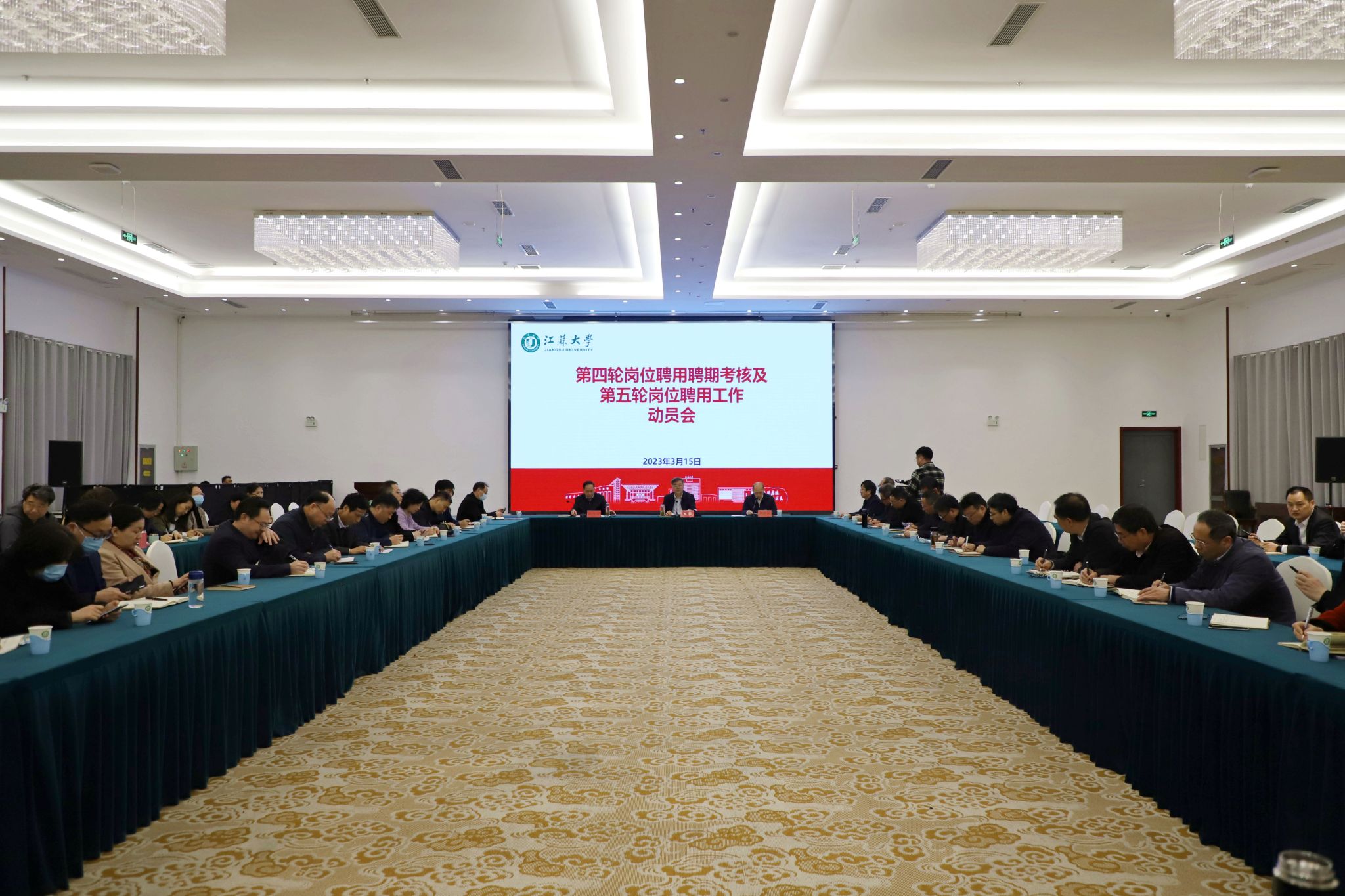 3月15日,学校举行第四轮岗位聘用聘期考核及第五轮岗位聘用工作动员会。校党委书记袁寿其、校长颜晓红出席会议,各教学科研单位、直属单位党政主要负责人参加会议。会议由副校长赵玉涛主持。