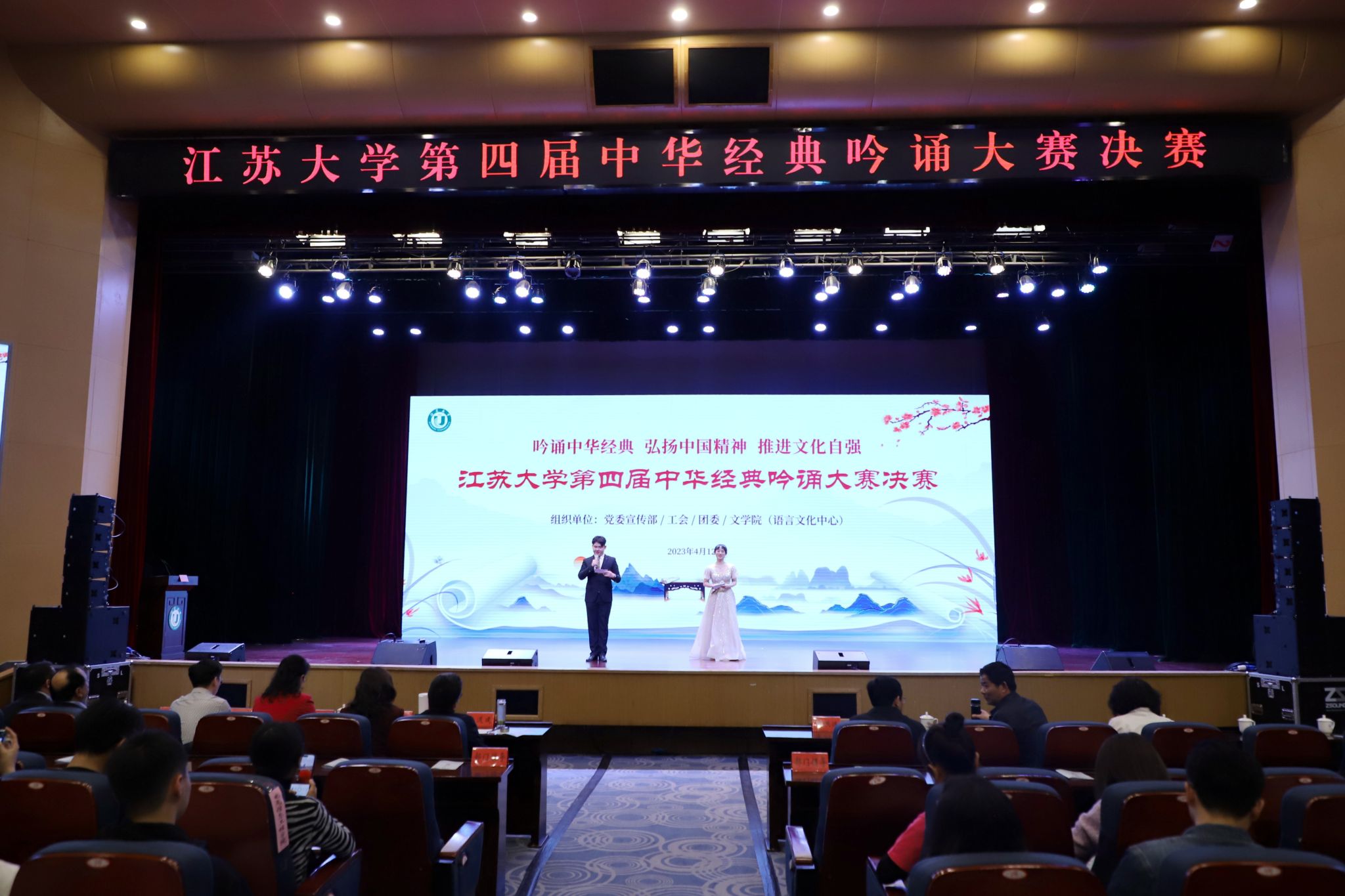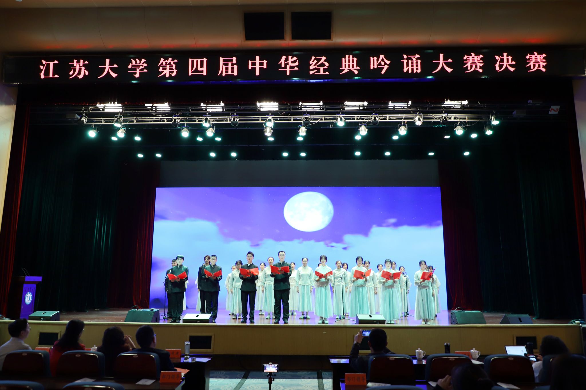4月12日,由党委宣传部、工会、团委、文学院(语言文化中心)联合主办的第四届中华经典吟诵大赛决赛在小礼堂举行。医学院《颂橘》、文学院(语言文化中心)《月光下的中国》荣获一等奖。