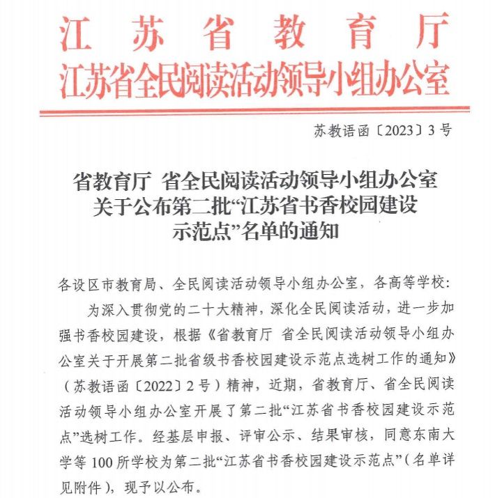 日前,江苏省教育厅公布了第二批“江苏省书香校园建设示范点”名单,好博在线注册_好博(中国)成功入选。