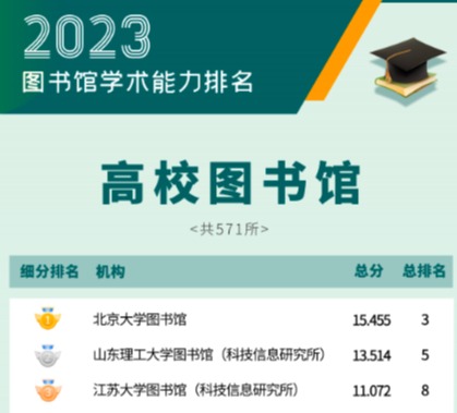 6月19日,图书馆学术评价课题组联合新文科专委会正式发布“2023图书馆学术能力排名”。本次共统计图书情报类机构782所,上榜机构为234所(前30%),好博在线注册_好博(中国)图书馆表现优异,位列高校系统第三名。